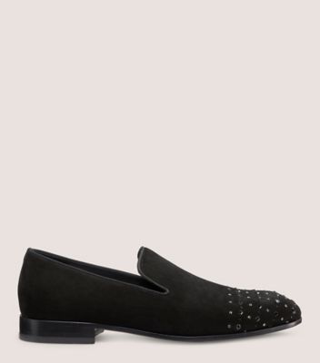 The PREMIERE PARTY TOE CAP LOAFER stands to be the focal point of any look. This elevated take on the classic loafer is adorned with hand-placed black and gunmetal crystal embellishments. Combined with its sleek refined silhouette this silhouette highlights the exquisite craftsmanship of our artisans in Italy. Shop the Men's Collection available exclusively online and in select SW boutiques.